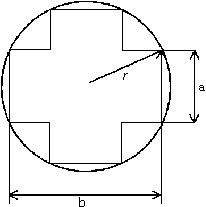 Einen Kreis mit dem Radius r = 4cm soll ein kreuzförmiger Querschnitt Q gleicher "Balkenbreite" einbeschrieben werden (vgl. Skizze). Es ist a < b gegeben. |